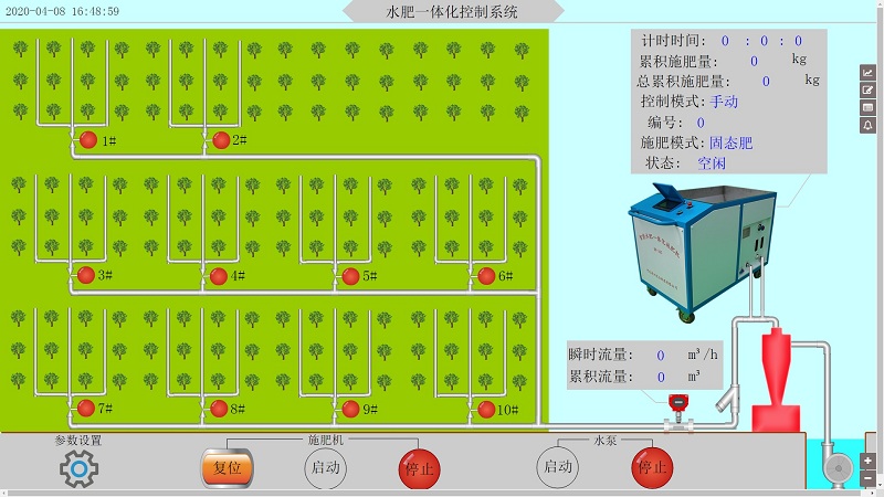 (6) 智能化電腦控制,可根據(jù)作物不同生長(zhǎng)期自動(dòng)設(shè)定灌溉水量、灌溉方式等,保證肥料主要留存于作物主要根層,避免因施肥時(shí)間過早或過晚而造成肥料浪費(fèi)。
